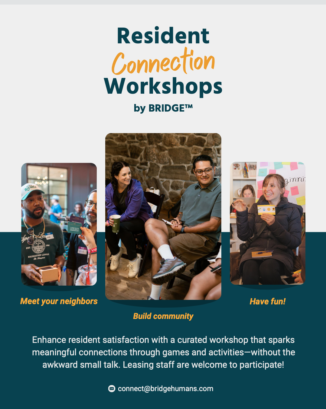 Not your average meet-and-greet! BRIDGE workshops use fun games and interactive activities to turn neighbors into friends, helping your community feel more connected and engaged—without the awkward small talk.